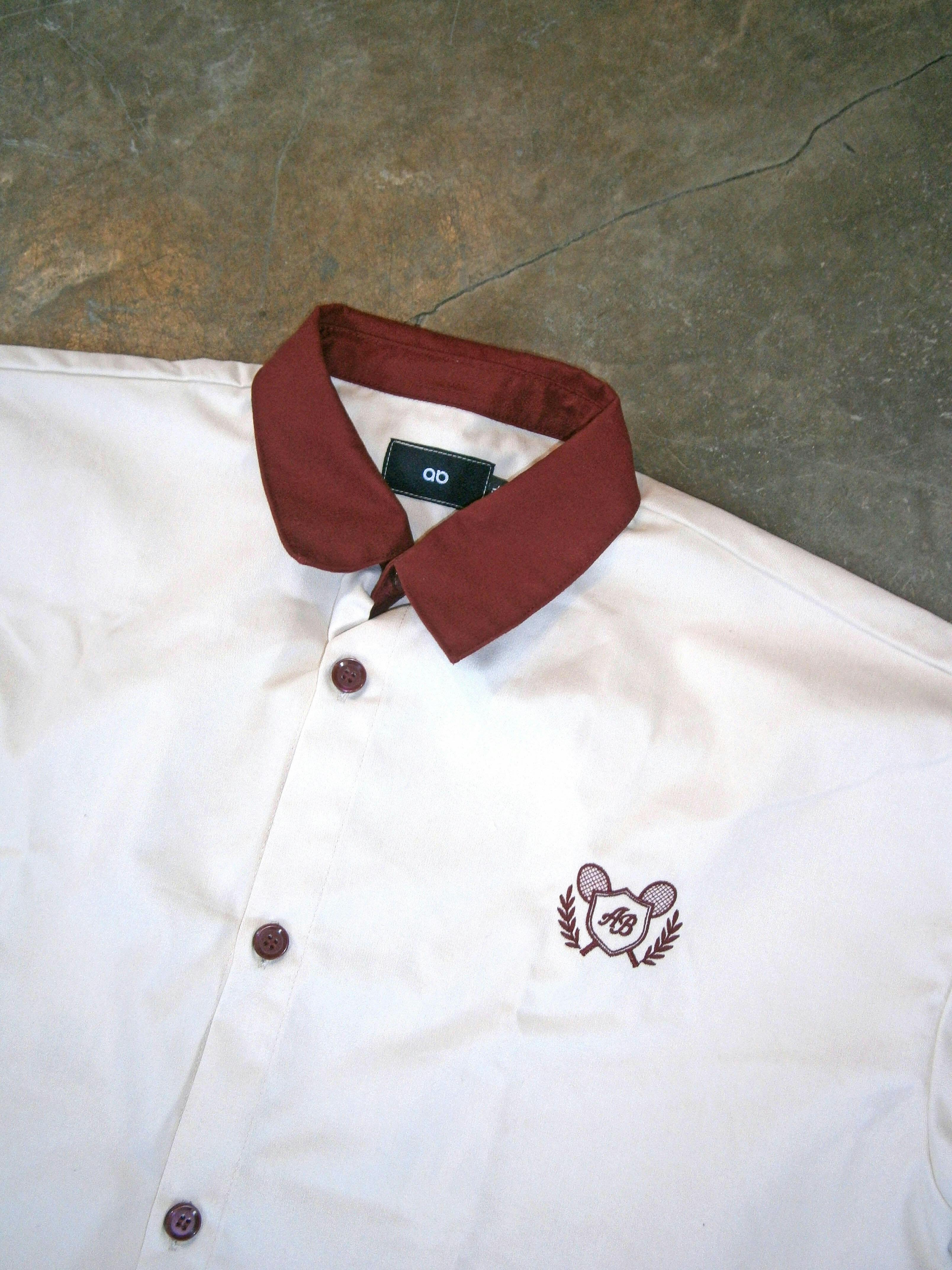 boxy polo shirt | athletics club in crème & rosewood